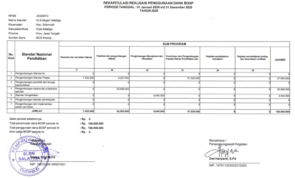 Laporan Realisasi Penerimaan Dana Belanja BOS Kinerja